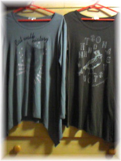 グレーはすそのアシンメトリー具合がちょっと子どもっぽいけど、ねこちんのプリントが可愛かったので思わず買っちゃいました。でも襟ぐりはちょっと詰まりすぎてなくてヨイ感じです。