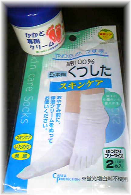 お風呂上りのやや柔らかくなったかかとにクリームを塗ってくつしたを履いて寝ます。